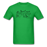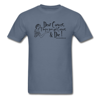 Dear Cancer, I hope you get cancer and die! What else can you really say about this shirt? It is blunt and to the point. Nobody likes cancer!