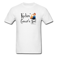 Are you currently kickin' cancer's ass? Do you know someone that is kickin' cancer's ass? Why not give them this shirt in their favorite color? Makes the perfect chemo day shirt!