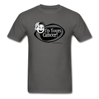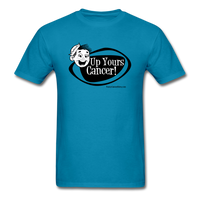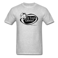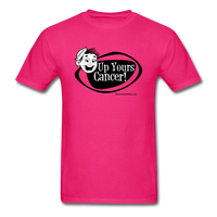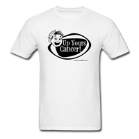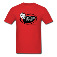 Our "UP YOURS CANCER" t-shirt is a kinder, gentler version of our "FUCK YOU CANCER" t-shirt! I mean come on, the cute freckle-faced kid on this shirt shouldn't be using the "F" word anyway! If you know someone fighting cancer, going through chemo etc... grab them one of these shirts to wear to their next oncology appointment!